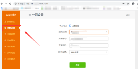 3)点击左侧的“外网设置”